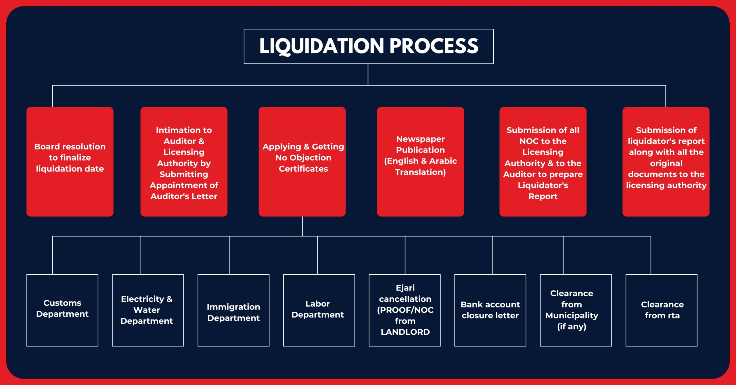 Liquidating a company in Dubai can be a complex and time-consuming process, but our team of experienced liquidators in the UAE is here to simplify the legal procedures and support you every step of the way. If your company is facing financial challenges such as insufficient revenue or significant debt accumulation, we can provide the assistance you need. At Litrix, we prepare a detailed Liquidator’s Report, also known as a No Liability Letter, created by a professional auditor. We then issue an Appointment of Liquidator’s Letter to notify the relevant licensing authority, followed by a Final Liquidator’s Report, ensuring that all potential liabilities of the company have been verified.